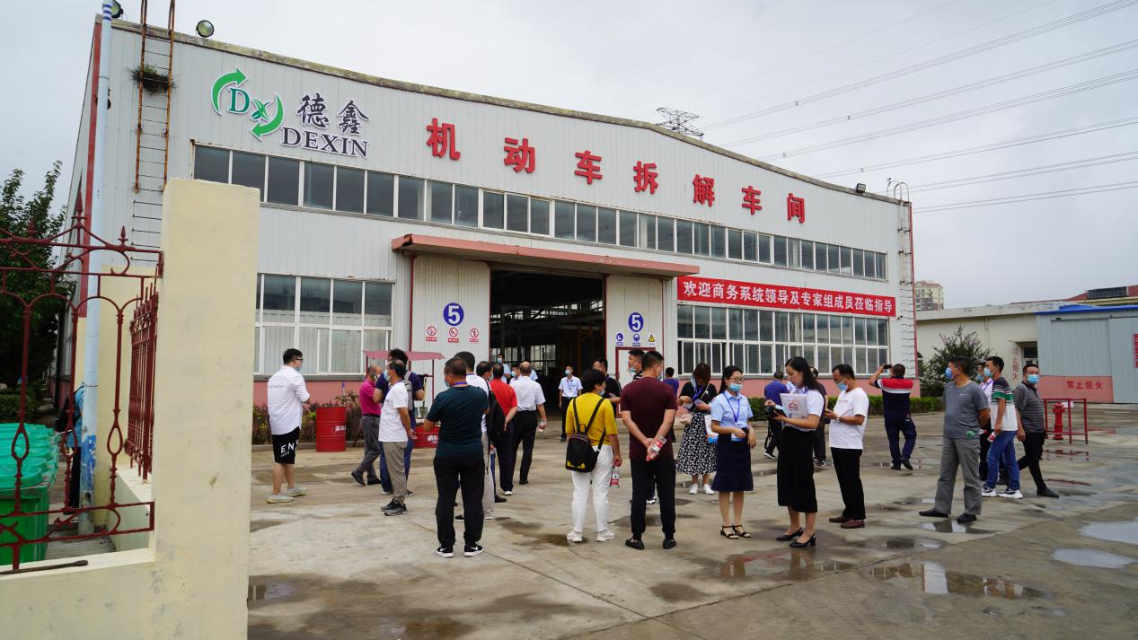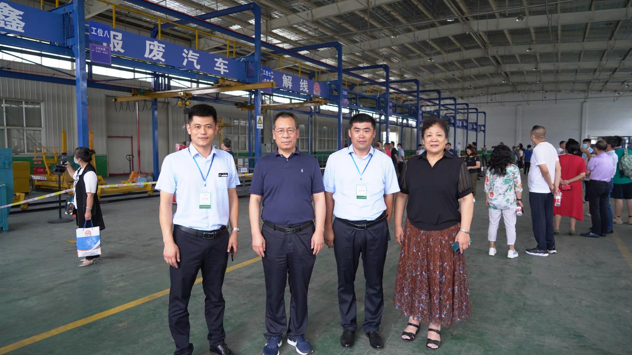 次日上午,參會的相關領導及企業代表到達青島德鑫控股集團有限公司,在青島德鑫控股集團有限公司總經理劉兆濤及山東龍鑫環保設備有限公司總經理楊洪杰的陪同下,參觀山東龍鑫環保設備有限公司報廢機動車拆解有關設備。在參觀過程中,領導們以及企業代表對山東龍鑫環保設備有限公司自主研發的鏈板式報廢機動車拆解線和地軌式報廢機動車拆解線實操性表示認同以及肯定。同時表示山東龍鑫研發的產品,不管是生產工藝還是產品質量上,都有較大的優勢,對作為報廢機動車拆解設備生產的重點企業充滿了期待。