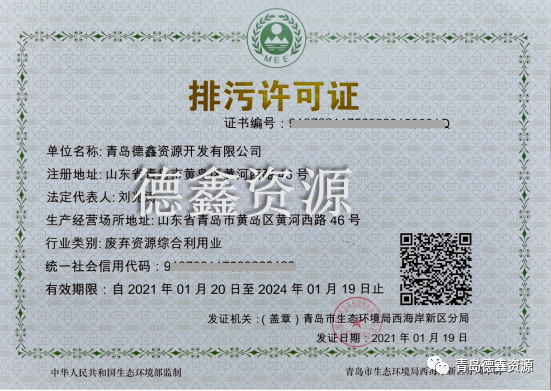 于2021年1月19日由山東省商務廳頒發報廢機動車回收拆解企業資質認定證書。